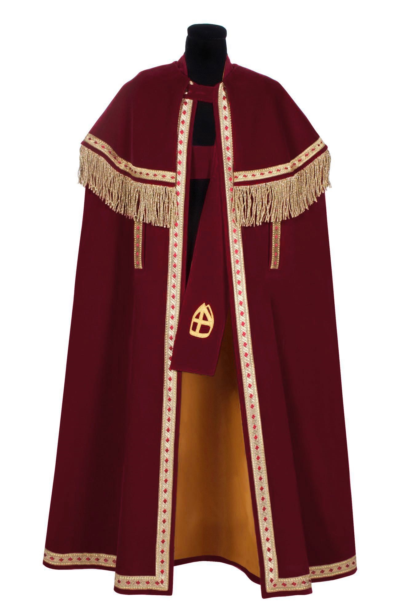 Stefan mantel in een smalle versie met origineel Stefan galon en mooie lange franje, deze mantel is gemaakt van een top kwaliteit Niedeck fluweel en is gevoerd met een satijnen voering. |