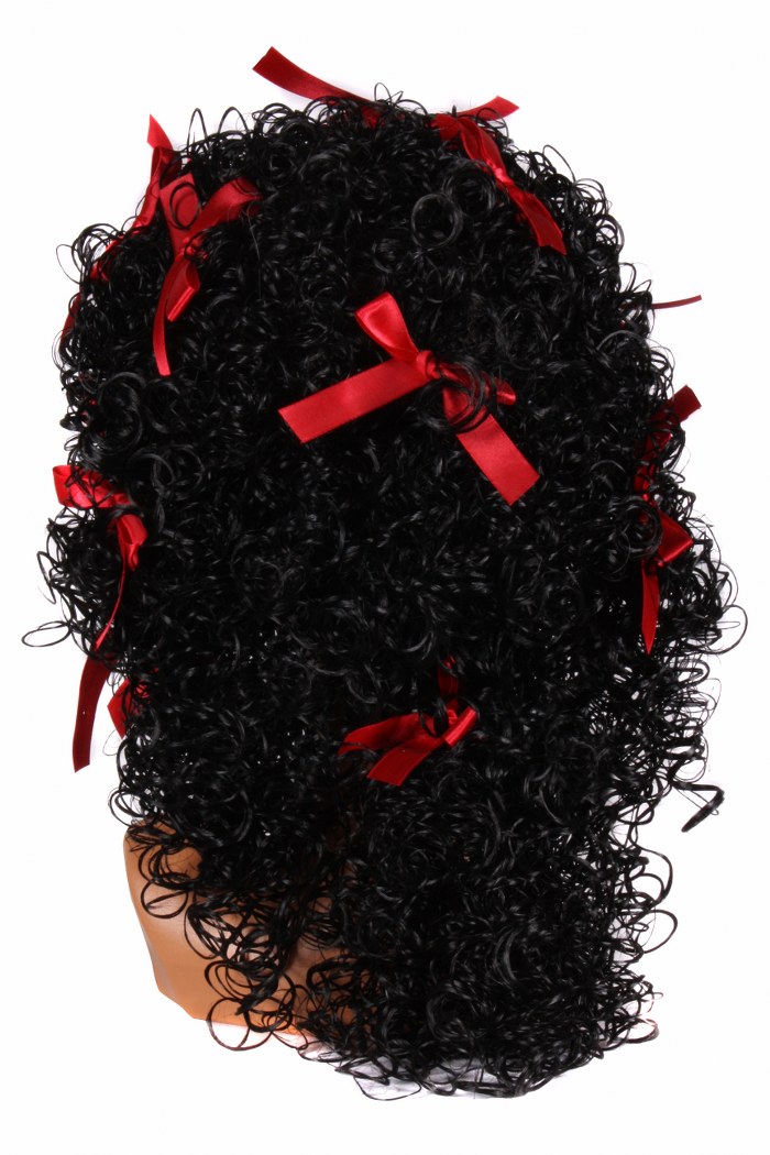 Damespruik Pepita, topkwaliteit pruik van kanekalon haar is verstelbaar en wasbaar. De haren van deze pruik zijn getrenst op een open net wat het draagcomfort heel groot maakt, mooie satijnen strikjes.