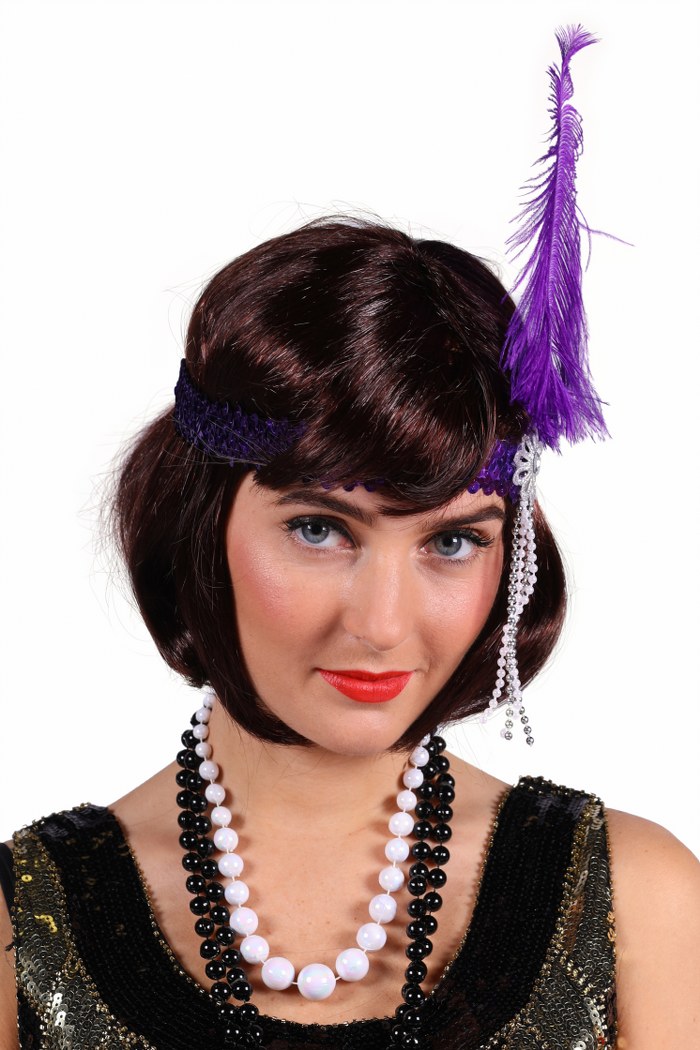 Pailletten band met veer, Paars