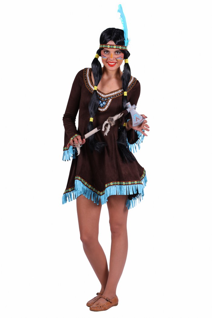 Indaanse jurk+hoofband/veer "Apache", Mix van kleuren
