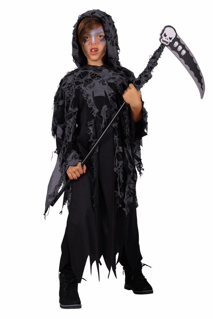 Habijt met capuchon in een spooky "used look" kwaliteit stof de zeis maakt dit kostuum compleet.