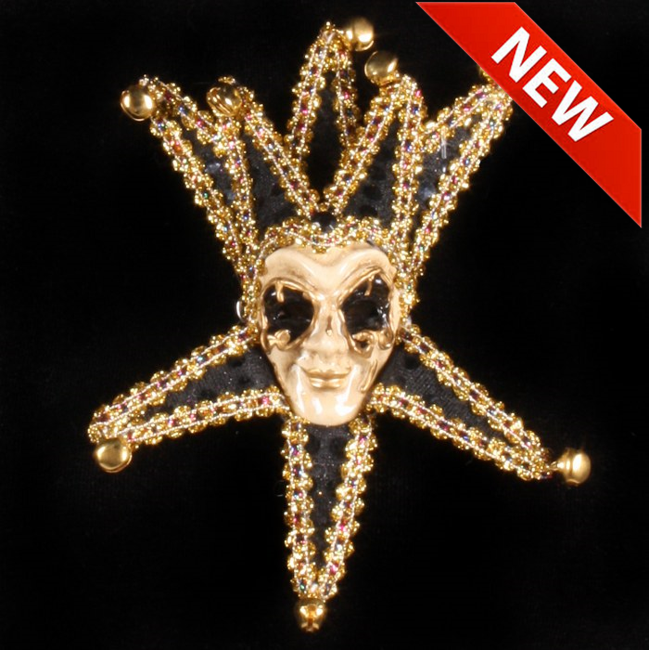 Venitiaans miniatuur masker '''Grinn'', Zwart
