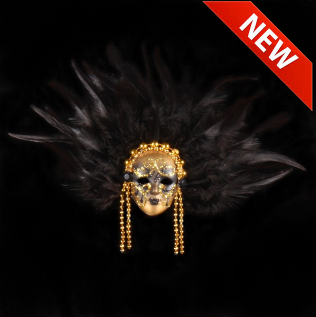 Venitiaans miniatuur masker ''Feathers'', Zwart