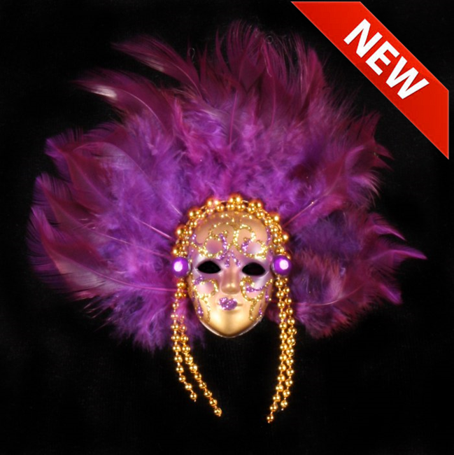 Venitiaans miniatuur masker ''Feathers'', Paars