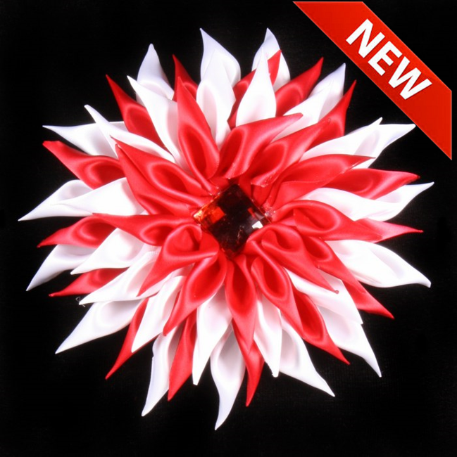 Gevouwen satijn bloem, Rood-Wit