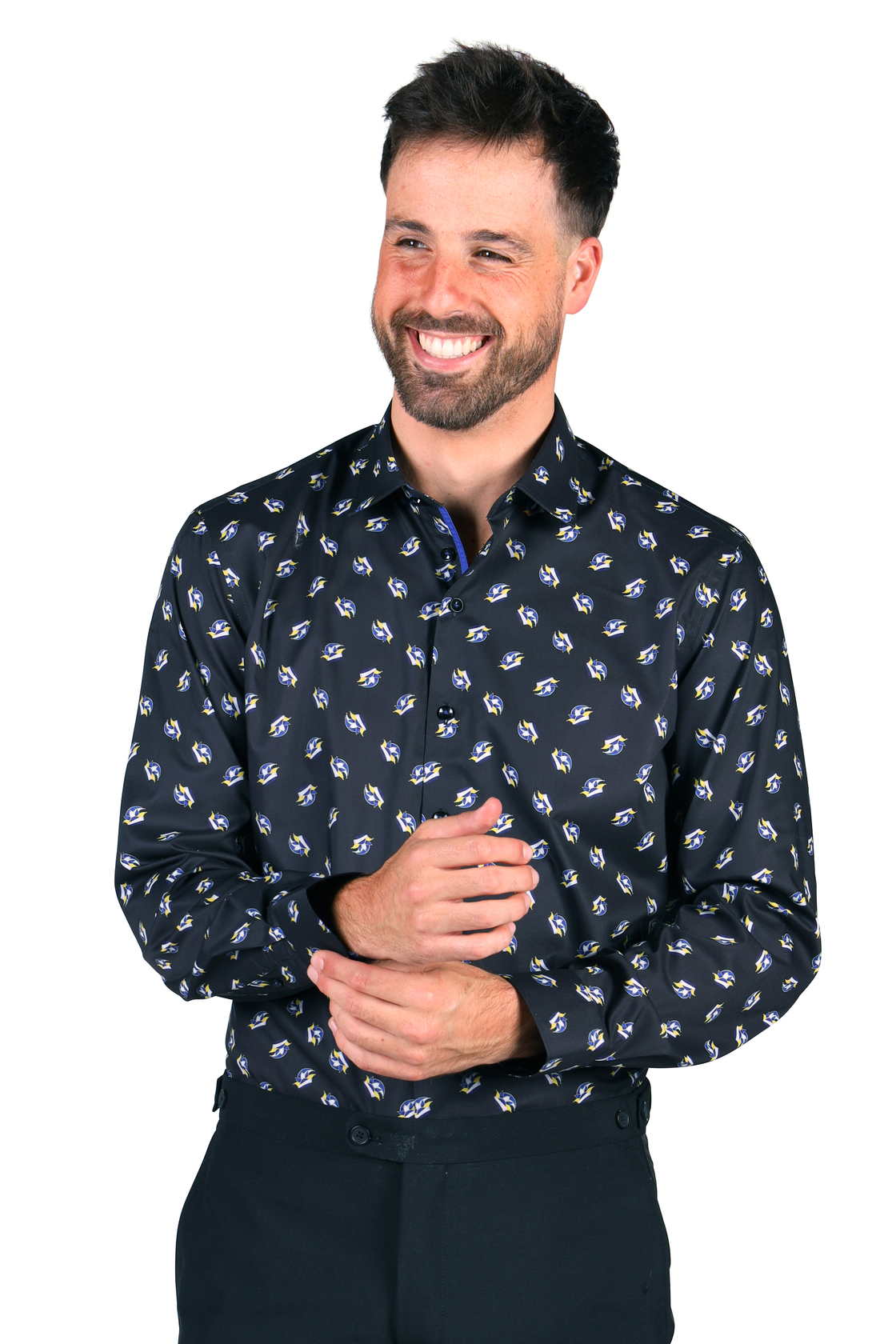 | 3719-0163-3738 | Herenhemd ''Prins'', Zwart-Blauw/geel | 3738 |